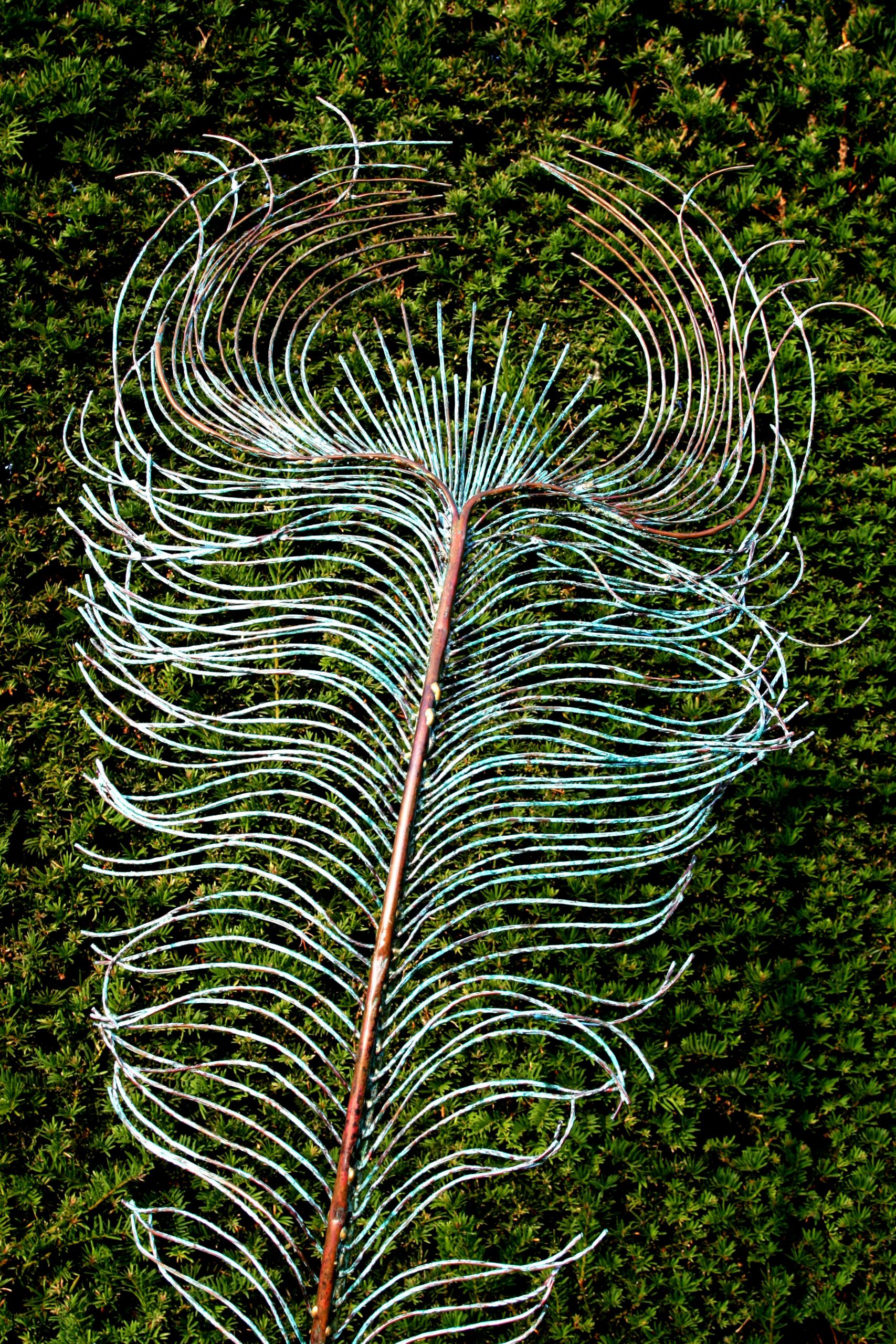 Emily Stone Copper Bird Peacock Feather Sculpture Close Up